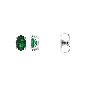 Stud Earrings in 14k White Gold with Oval Lab Created Emeralds