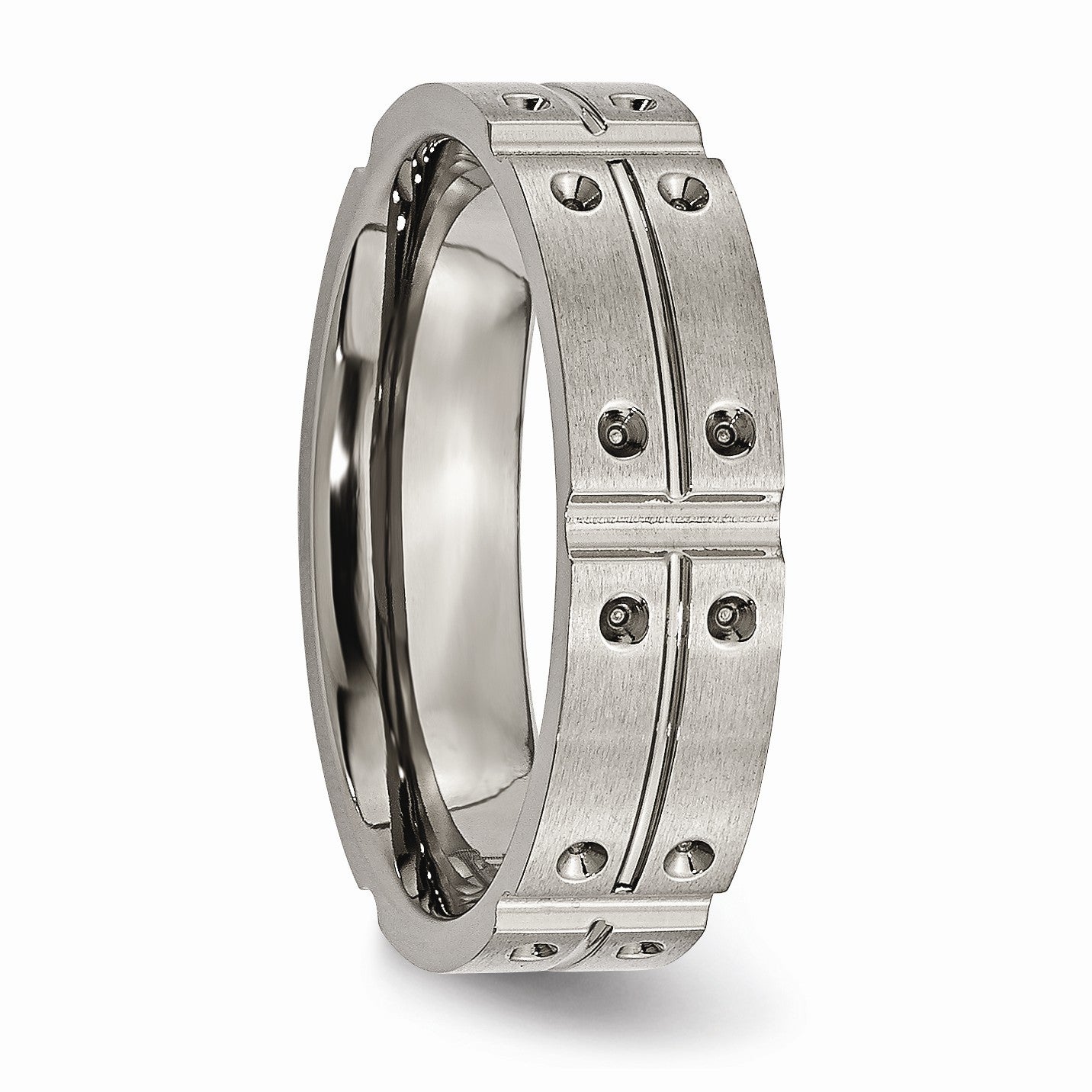 The gray gunmetal tone of titanium combined with a brushed and polished finish creates a subtle yet striking contrast on this grooved designed ring. The band measures 6mm in width and the comfort fit interior makes it perfect for active lifestyles.