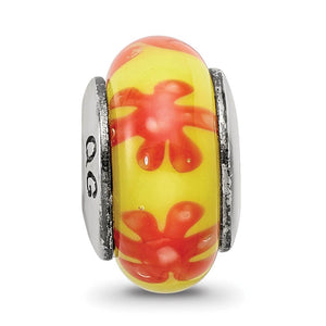 Yellow & Orange Floral Glass Sterling Silver Bead Charm - Black Bow Jewelry Company