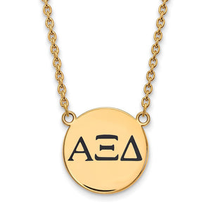 14K Plated Silver Alpha Xi Delta Lg Blue Greek Letter Disc Necklace - Black Bow Jewelry Company