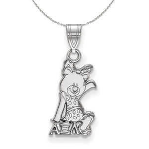 Show your greek life spirit with this Alpha Xi Delta Sorority pendant necklace. It is crafted with rhodium plated sterling silver and without the bail is 16mm in height and 9mm in width (0.63 in x 0.35 in). With the bail, the measurements are 21mm in height and 9mm in width. We are a certified LogoArt retailer and this authentic item is licensed by the Alpha Xi Delta Sorority and Greek Life. This pendant necklace is made the USA. Includes a 16 Inch, 1.25mm cable chain.