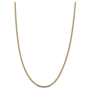 Displaying a contemporary design with pave-cut oval links that provide added dimension and sparkle, this fancy tri-color anchor chain with its solid link construction of polished 14k yellow gold with rose and white rhodium plating will give any outfit a glamorous touch. Measuring 2.75mm in width by 20-inches in length and closes with a lobster claw clasp.