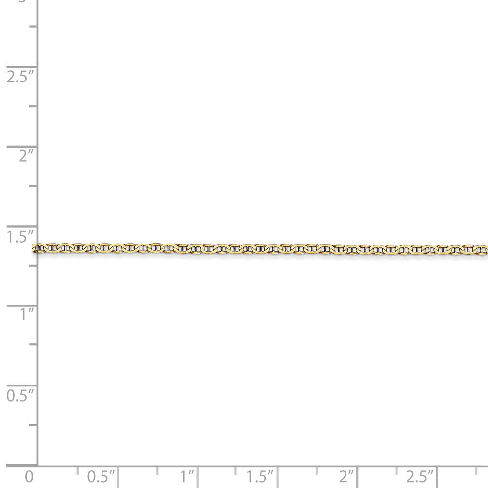 Our traditional mariner chain made of 14k yellow gold features solid flat links that mimics the cable used to anchor boats. Flexible and strong, this elegant 1.5mm width chain closes securely with a lobster-claw clasp and makes a beautiful unisex necklace. 14 inches in length.