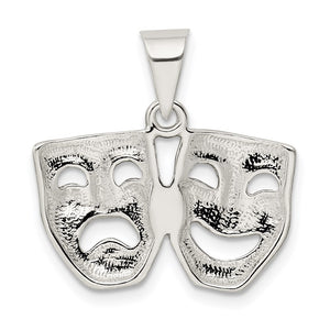 Sterling Silver Polished Comedy and Tragedy Mask Pendant - Black Bow Jewelry Company