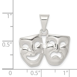 Show your appreciation for the arts with this comedy/tragedy mask pendant styled from polished sterling silver. It is approximately 23mm (15/16 Inch) in width by 23mm (1 Inch) in length, which includes the tapered bail. Chain not included.