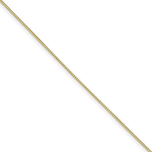 Simple, classic and ready for your favorite pendant, this delicate nickel free 10k yellow gold box chain necklace is 0.7mm in width by 18-inches in length and closes with a classic lobster claw clasp.