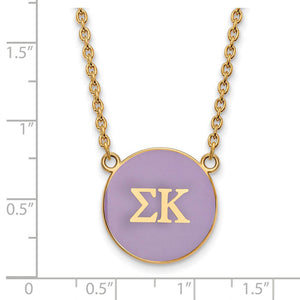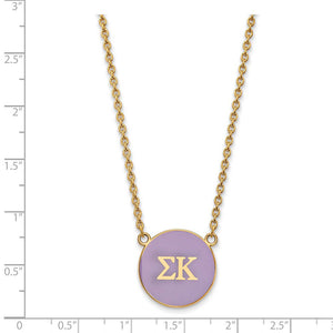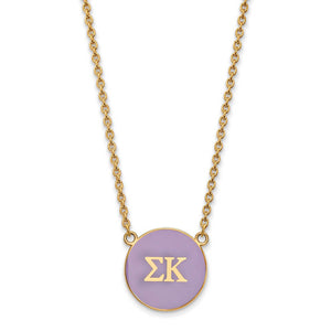 14K Plated Silver Sigma Kappa Large Purple Enamel Disc Necklace