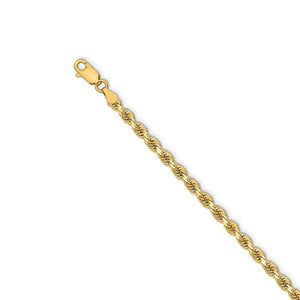 3.25mm 14k Yellow Gold, Solid Diamond Cut Rope Chain Bracelet