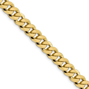 Wide flat curb links of 14k yellow gold enhanced with beveled edges form an attractive necklace that looks great alone or layered with multiple chains to complete your desired style. It features solid links that measures 8.75mm in width by 24-inches in length and closes with a reliable lobster clasp.