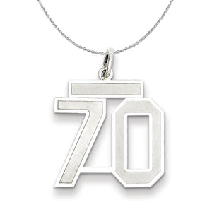 Celebrate your favorite sports player, lucky number or milestone date in your life with a prominent rhodium-plated sterling silver charm. Each laser-cut satin and polished number is approximately 15mm (9/16 inch) in length, which is finished with a 3mm top bar and classic jump ring that will accommodate up to a 3mm chain. Includes a 1.25mm, 20 inch sterling silver cable chain.