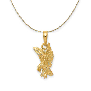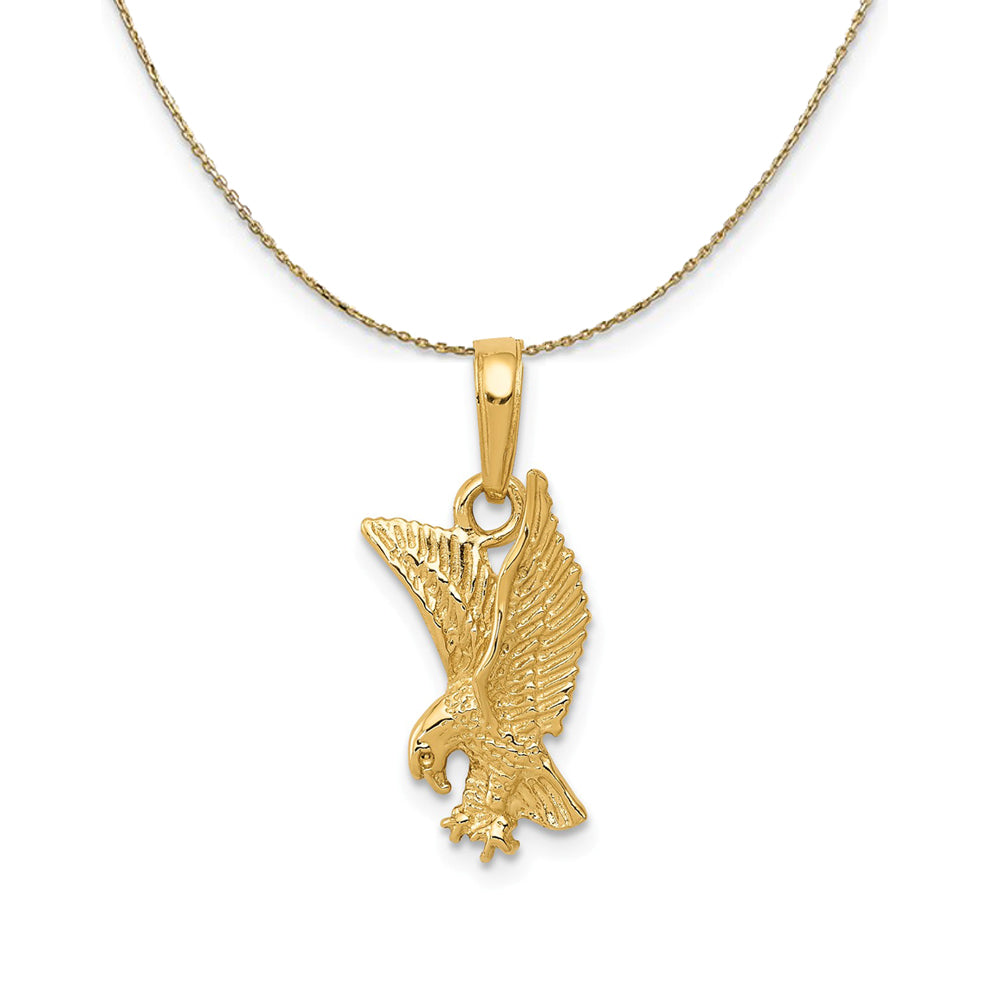 14k Yellow Gold Small 2D Landing Eagle Necklace - Black Bow Jewelry Company