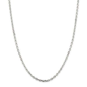 Cable chains are the most common type of jewelry chain that is made using an individual oval or round link interlocked in a uniform pattern, with each link lying at ninety degrees to the next. It is identical throughout, giving it a simple but classic look. This polished sterling silver necklace features solid open oval links that are beveled on the edge and approximately 3.25mm in width by 26-inches in length. It closes with a lobster claw clasp.