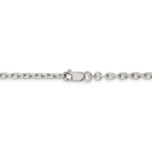 Cable chains are the most common type of jewelry chain that is made using an individual oval or round link interlocked in a uniform pattern, with each link lying at ninety degrees to the next. It is identical throughout, giving it a simple but classic look. This polished sterling silver necklace features solid open oval links that are beveled on the edge and approximately 3.25mm in width by 24-inches in length. It closes with a lobster claw clasp.
