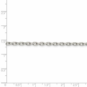Cable chains are the most common type of jewelry chain that is made using an individual oval or round link interlocked in a uniform pattern, with each link lying at ninety degrees to the next. It is identical throughout, giving it a simple but classic look. This polished sterling silver necklace features solid open oval links that are beveled on the edge and approximately 3.25mm in width by 30-inches in length. It closes with a lobster claw clasp. This item is backordered and we estimate it to ship in approx. 10-12 days. Please email service@theblackbow.com for more details.
