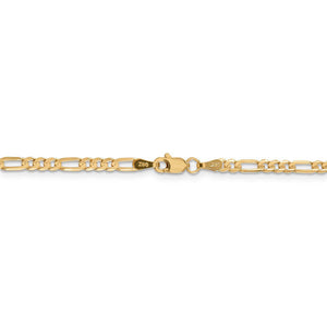 • Our 14k yellow gold, open figaro chain closes with a lobster-claw clasp and features a modern concave design that has been hand-polished to ensure a smooth finish. Measuring 3mm in width, the solid link construction of this beautiful chain offers versatility along with durability. 8 inches in length.