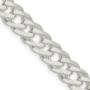 Simply striking, a fancy curb-style bracelet chain featuring a double flat link design with a diamond-cut finish made of sterling silver. It is approximately 7.75mm in width by 8-inches in length and closes with a lobster clasp. Made in Italy.