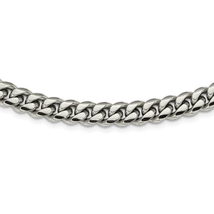 Ageless and classic, a domed curb chain is eye-catching and fashionable. The stainless steel solid links on this polished necklace chain are approximately 10mm in width by 24-inches in length and closes with a fancy lobster clasp.