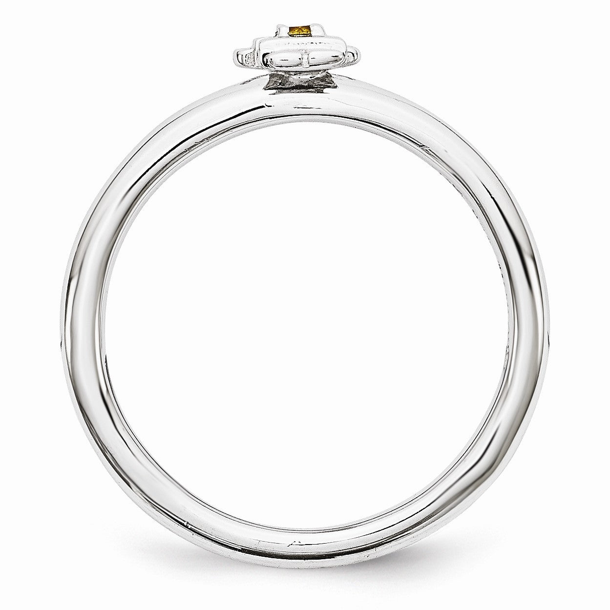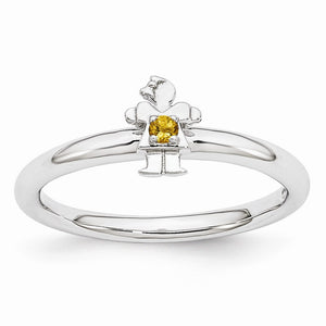 Rhodium Plated Sterling Silver Stackable Citrine 7mm Girl Ring - Black Bow Jewelry Company