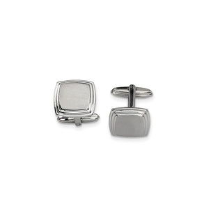 Men's Stainless Steel Brushed & Polished Square Step Edge Cuff Links - Black Bow Jewelry Company