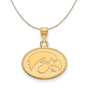 If you are a fan of The University of Iowa and the Hawkeyes then you need to show your school spirit with this University of Iowa pendant. We are a certified college jewelry retailer and this authentic item is officially licensed. It is crafted from 14k Yellow Gold and crafted by LogoArt in the USA. Includes a 24 inch, 0.8mm 14k yellow gold cable chain with a lobster clasp.