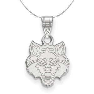 • If you are a fan of Arkansas State University and the Red Wolves then you need to show your school spirit with this Arkansas State University necklace. We are a certified college jewelry retailer and this authentic item is officially licensed. It is crafted from Sterling Silver and crafted by LogoArt in the USA. Includes an 18 Inch, 1.25mm cable chain.