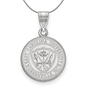 Sterling Silver East Carolina U Medium Crest Pendant Necklace