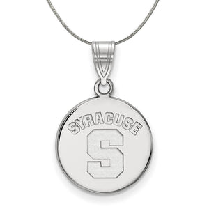 If you are a fan of Syracuse University and the Oranges then you need to show your school spirit with this Syracuse University necklace. We are a certified college jewelry retailer and this authentic item is officially licensed. It is crafted from Sterling Silver and crafted by LogoArt in the USA. Includes an 18 Inch, 1.25mm sterling silver franco chain.
