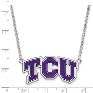 Sterling Silver Texas Christian U Large Enamel Pendant Necklace