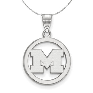 Sterling Silver U. of Michigan Small Initial M Circle Necklace