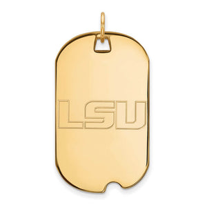 If you are a fan of Louisiana State University and the Fightin Tigers then you need to show your school spirit with this Louisiana State University pendant. We are a certified retailer and this authentic item is officially licensed. It is crafted from 14k Yellow Gold and designed and crafted in the USA. It is approximately 24mm (15/16 inch) in width by 40mm (1 1/2 inch) in length. The total length with the jump ring or bail is roughly 46mm (1 3/4 inch). This item is not currently in-stock. Once you place your order, please allow us 5 to 7 business days to make it for you.