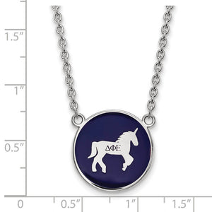 Sterling Silver Delta Phi Epsilon Lg Blue Enamel Unicorn Disc Necklace - Black Bow Jewelry Company