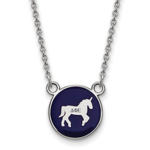 Sterling Silver Delta Phi Epsilon Sm Blue Enamel Unicorn Disc Necklace