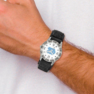 Category: 2 Year Warranty 3 ATM (Tested) Water Resistant Alloy Analog Display Black Colored Band Boys Watches Collegiate Girls Watches Hook and Loop Closure Kids Watches Mineral Crystal NCAA NCAA - U. of North Carolina Not Engravable Nylon Band Quartz (Battery Operated) Round Face Stationary Bezel White Face Wrist Watch