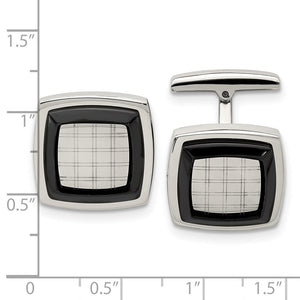 Stainless Steel & Black Plated Polished & Etched Cuff Links, 19mm