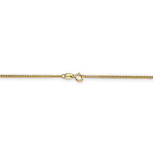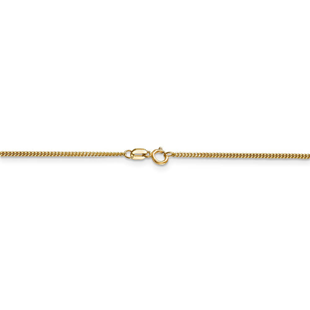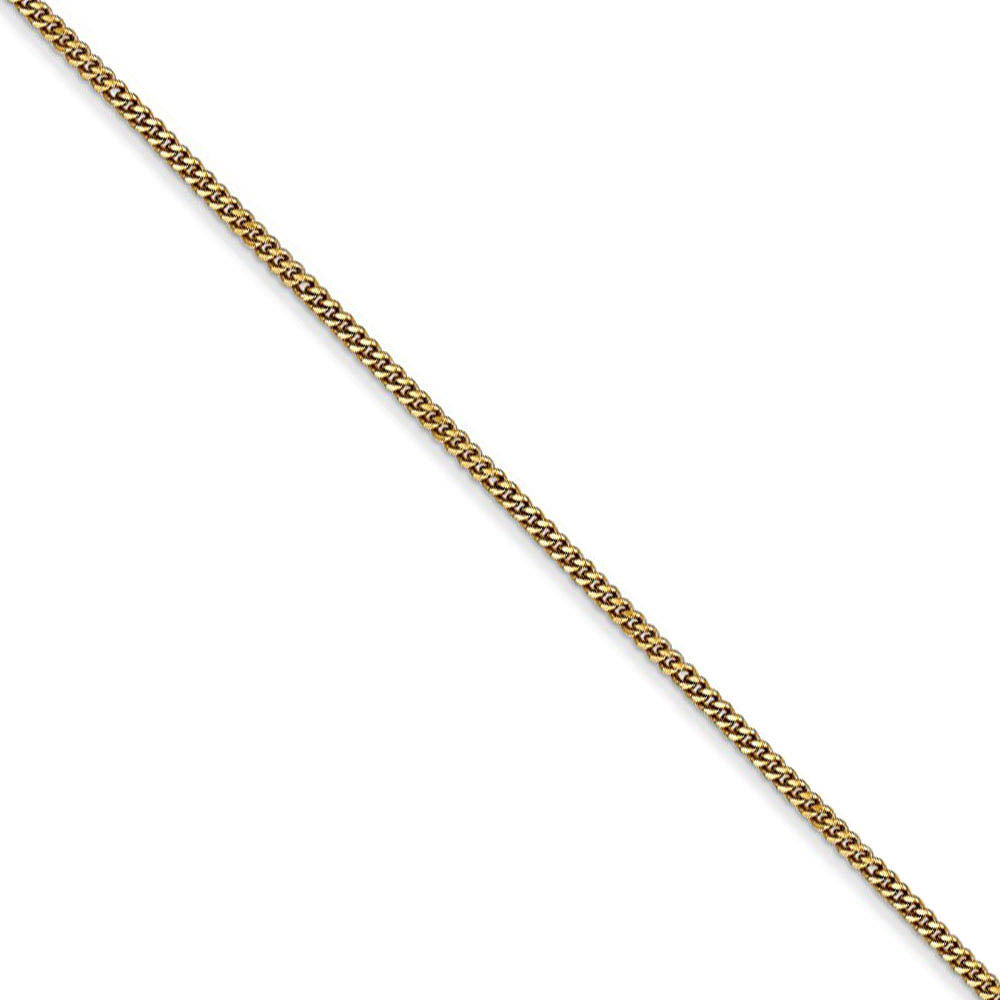 A curb chain is one of the most popular choices for displaying charms or pendants because the oval-shaped links are twisted to lie flat. This attractive 14k yellow gold 1.3mm width necklace features a bright, polished finish and closes with an easy to use spring ring clasp. 18 inches in length.
