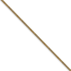 A curb chain is one of the most popular choices for displaying charms or pendants because the oval-shaped links are twisted to lie flat. This attractive 14k yellow gold 1.3mm width necklace features a bright, polished finish and closes with an easy to use spring ring clasp. 24 inches in length.