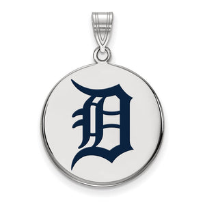 Sterling Silver MLB Detroit Tigers LG Enameled Disc Pendant