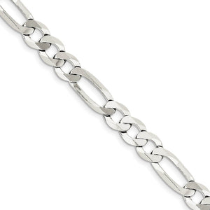 9.5mm Sterling Silver Flat Figaro Chain Bracelet