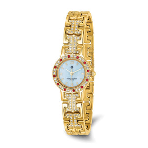 Charles Hubert Ladies Gold-Tone MOP Dial with 4 Crystal Bezels Watch
