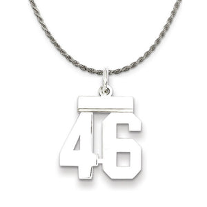 Celebrate your favorite sports player, lucky number or milestone date in your life with a prominent rhodium-plated sterling silver charm. Each polished number is approximately 18mm (11/16 inch) in length, which is finished with a 2mm top bar and a classic jump ring. Includes a flexible and strong diamond cut rope chain. This stunning chain is 2.25mm in width, 26 inches in length and features a sturdy lobster claw clasp. The chain is crafted in Italy.