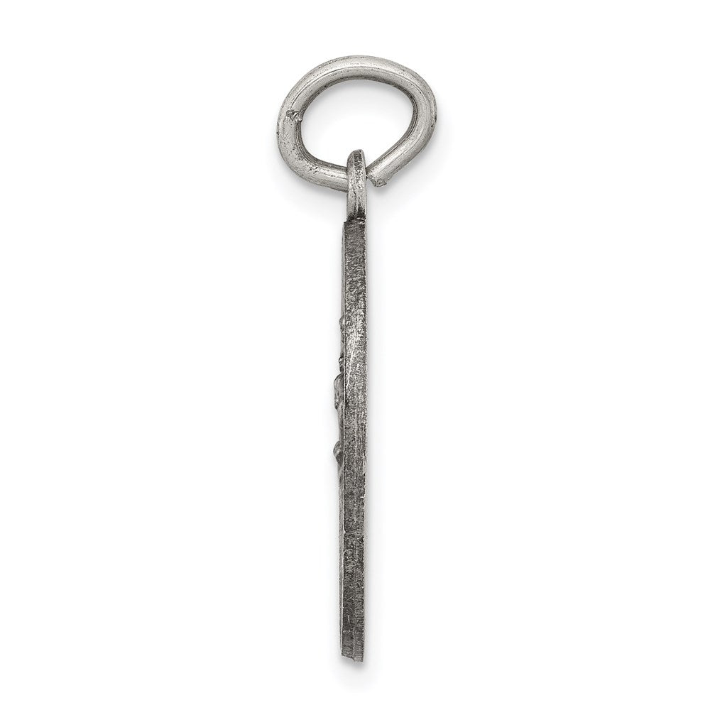 Celebrate and honor all special occasions with jewelry of religious significance! Our collection of spiritually inspired designs that show faith, hope and devotion are perfect for commemorating life's milestones. This St. Christopher (patron saint of travelers and motorists) pendant crafted in sterling silver features a solid, 2-dimensional, satin and antiqued design that is suitable for engraving. The approximate size is 18mm (11/16 inch) in diameter. This item does not include a chain.