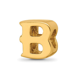 Letter B Bead Charm in 14k Yellow Gold Plated Sterling Silver