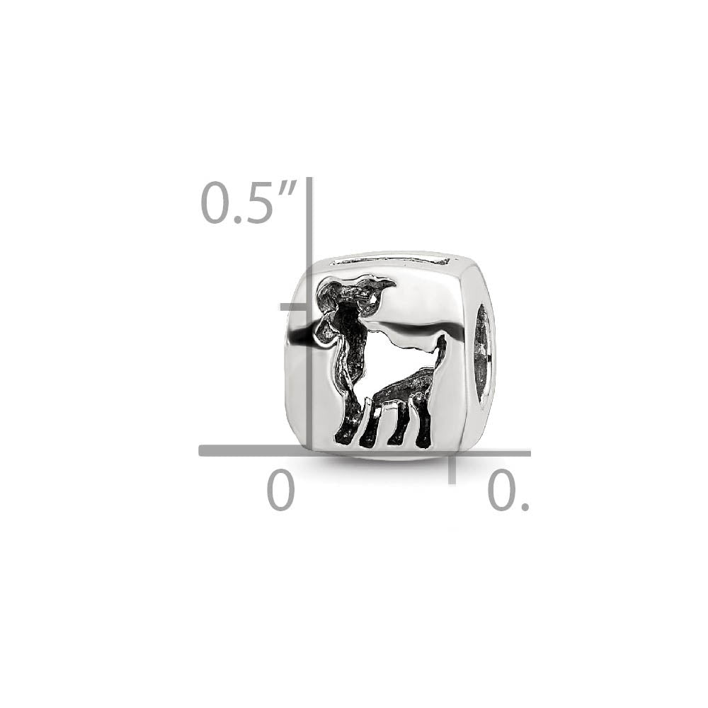 Zodiac sign of Aries, the ram is for individuals with birthdays from March 21st to April 20th. This double sided; sterling silver charm measures approximately 12 x 13mm and has a 4mm core that is interchangeable as well as compatible with Reflections and other popular 3mm width bead style bracelets and necklaces.