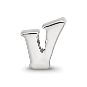 Sterling Silver Letter V Polished Bead Charm, 10mm