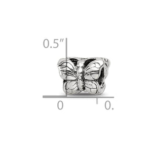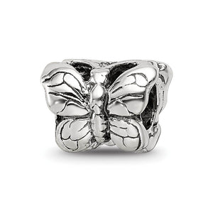 The detailed, characteristics of this carefree butterfly captured in sterling silver are enhanced by the antique finish and measures approximately 10 x 14mm with a 4mm core. All of our charms are interchangeable as well as compatible with Reflections and other popular 3mm width bead style bracelets and necklaces.