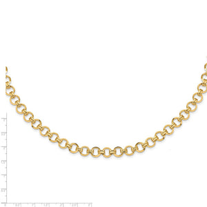 A simple but elegant style featuring a hollow circle link design made from polished 14k yellow gold. This versatile fashion necklace is approximately 9.5mm (3/8 Inch) in width by 18-inches in length and closes with a fancy lobster clasp.