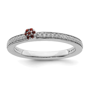 14k White Gold, Garnet & 1/8 Ctw Diamond Stackable Ring