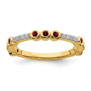 2mm 14k Yellow Gold Garnet & .08 Ctw Diamond Stackable Band