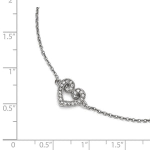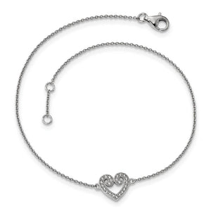 Rhodium Plated Sterling Silver 10mm CZ Heart And Cable Anklet, 9-10 In - Black Bow Jewelry Company