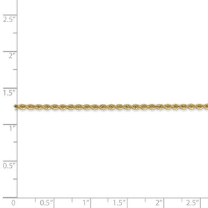 A traditional 14k yellow gold rope chain measuring 2mm in width is handmade and closes with a lobster claw clasp. Its versatile, solid link design is ideal for men and women. 8 inches in length.